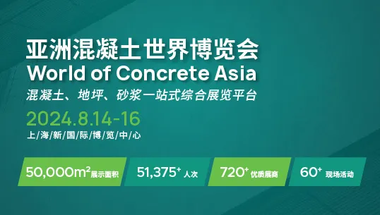 2024年亚洲混凝土世界博览会woca开馆时间为8月14-16日,将在上海浦东新国际博览中心举办,来自全球的700多个地坪、砂浆、混凝土品牌将汇聚于此,并有专业观众51375人到达展会现场,为全球观众呈现一场精彩纷呈的行业盛会。